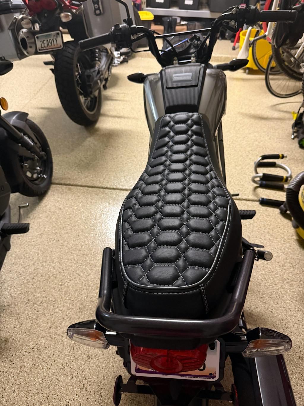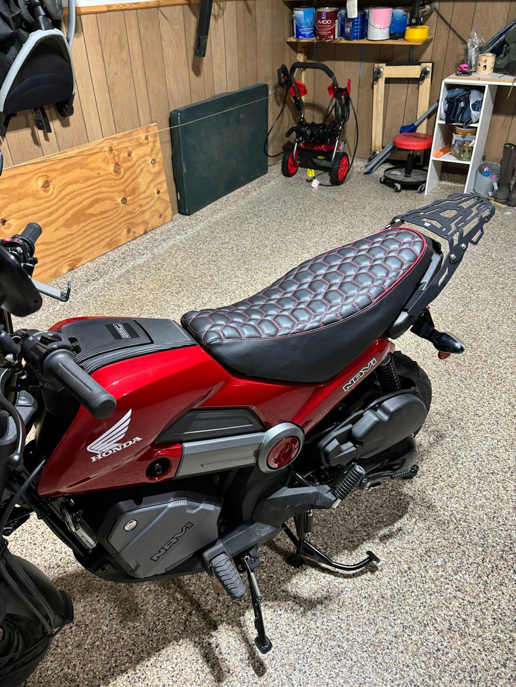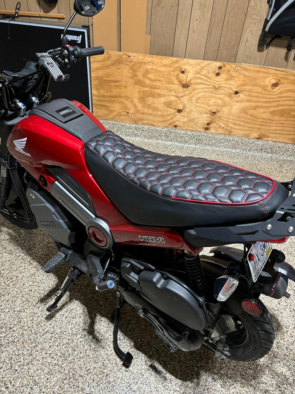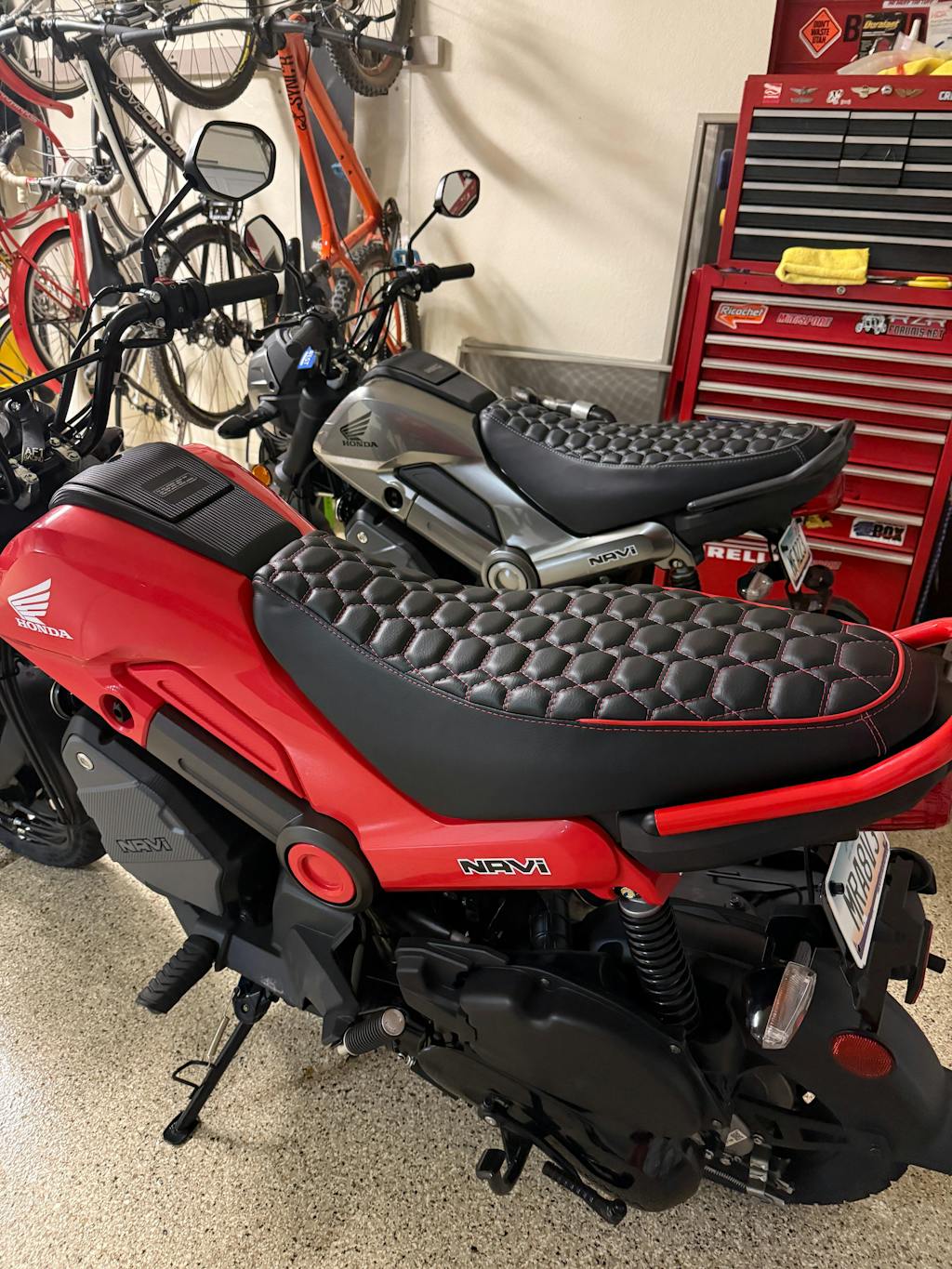 My hubby and I bought two Honda Navis recently to have some fun with riding around our neighborhood..... I decided to order two Cheeky Seat covers that match each of our scooters for my hubby's birthday. He absolutely LOVES the hexagon pattern, and the fact that they match the motorcycles!!!! I ordered his with "extra padding" and they look PHENOMENAL !!! Really makes the bikes look that much better !!!! Thanks Cheeky Seats !!!!