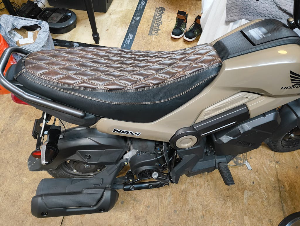 Our handmade diamond seat cover is an exciting accessory for your Honda Navi seat! Sewn by hand, we know that this seat cover will add a great custom element to your Navi. Made to order.