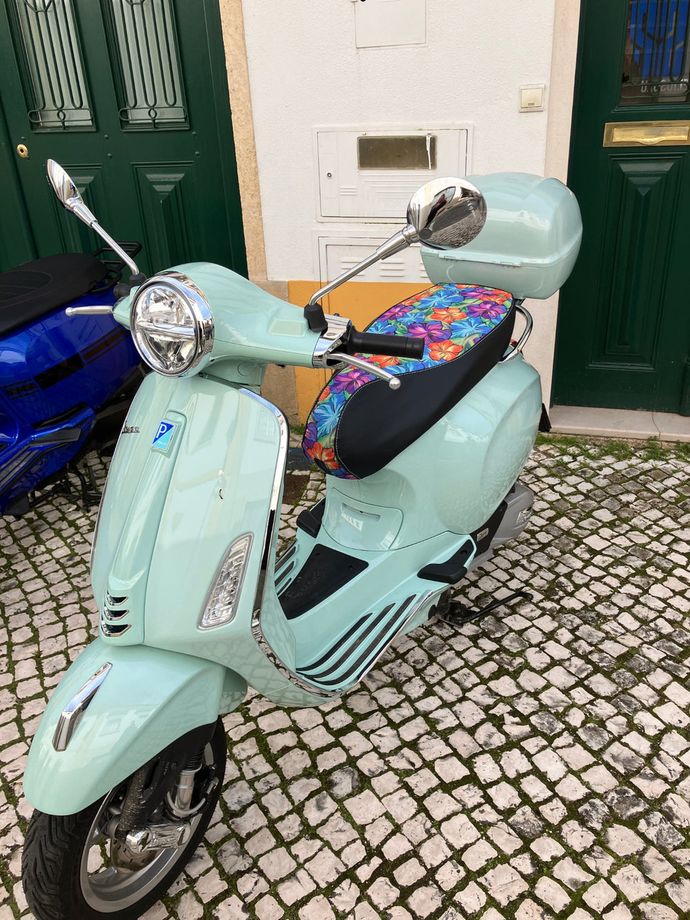 Vespa Sprint / Primavera Green and Blue Paisley SEAT COVER - Beat The Heat!!